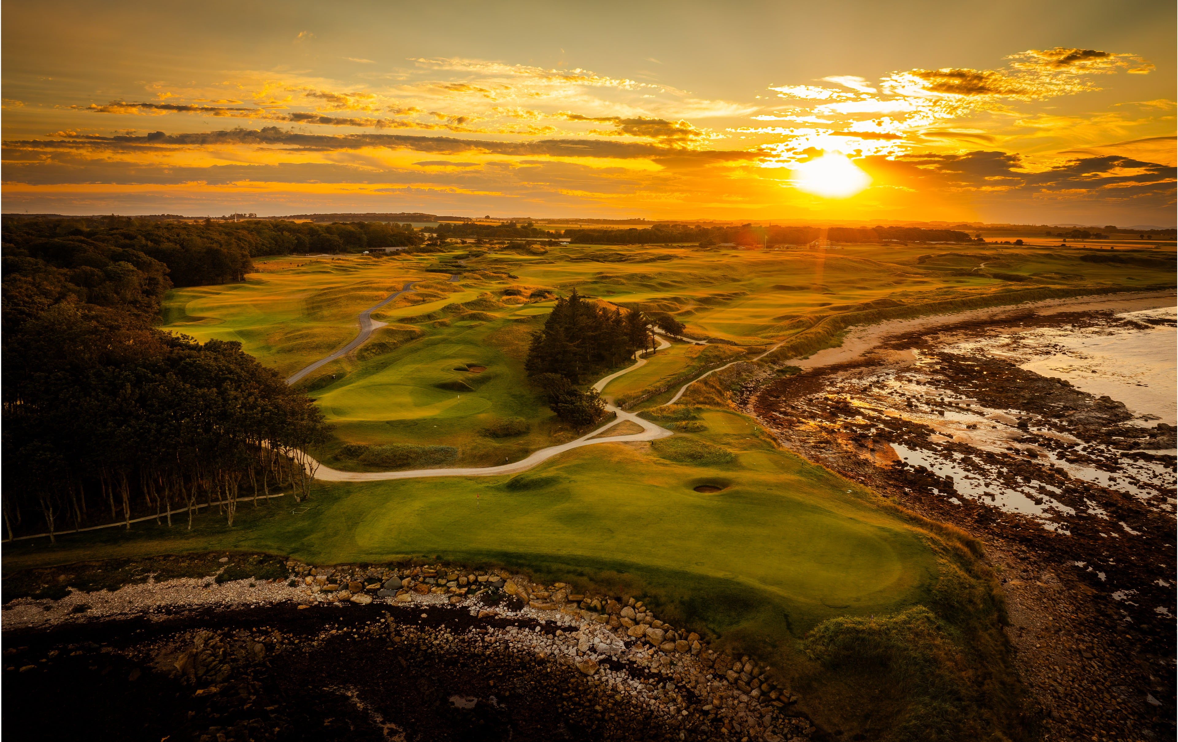 Photographed by Ryan Hugh Caven on a beautifully still November afternoon, the soft golden light falls across the 1st green as the skyline of St Andrews rises behind it timeless, familiar, and deeply personal to anyone who has ever walked those fairways.